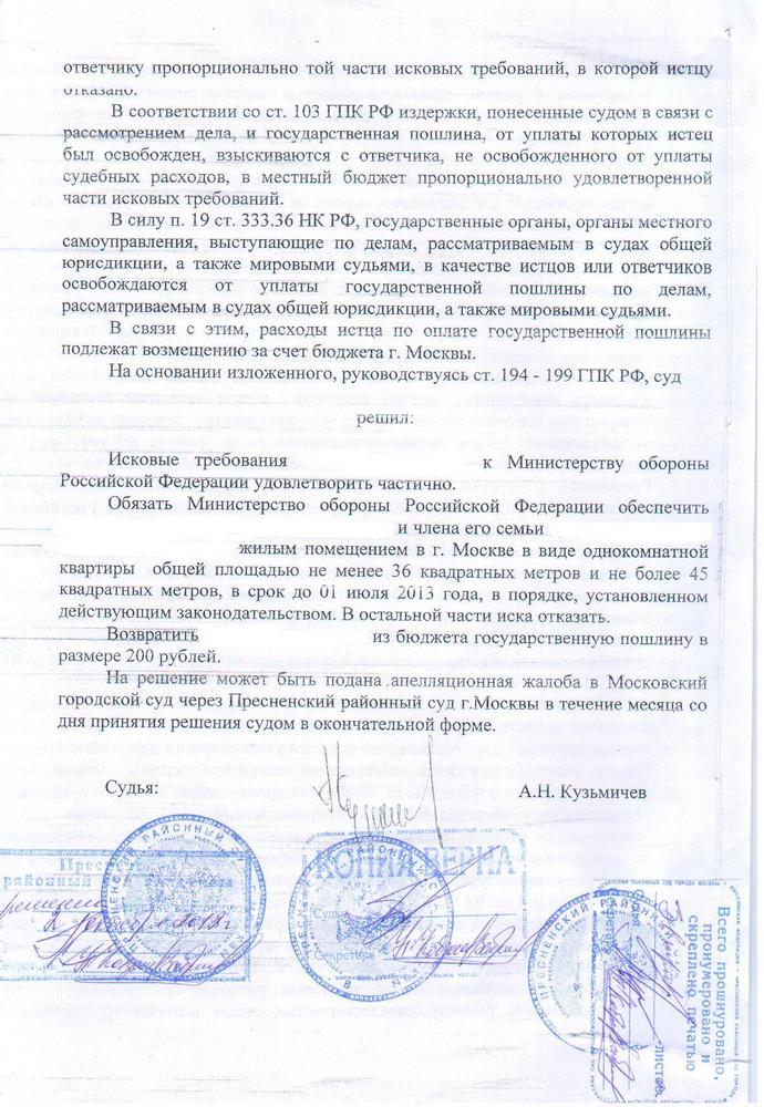 Частное определение Московского городского суда, касающееся жилья для военных в Москве по ул.Синявинская.