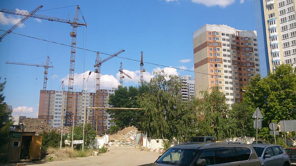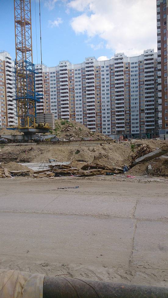По состоянию на начало июня в них ещё 9 секций только начинали возводить на разных стадиях от заливки основания фундамента до монтажа цокольного этажа,