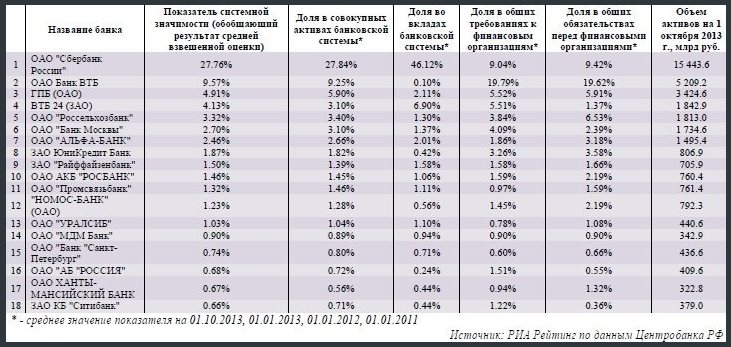 тут малость другие понятия действуют, а именно - "показатель системной значимости" банка. Свежих данных не находил, но вот например: