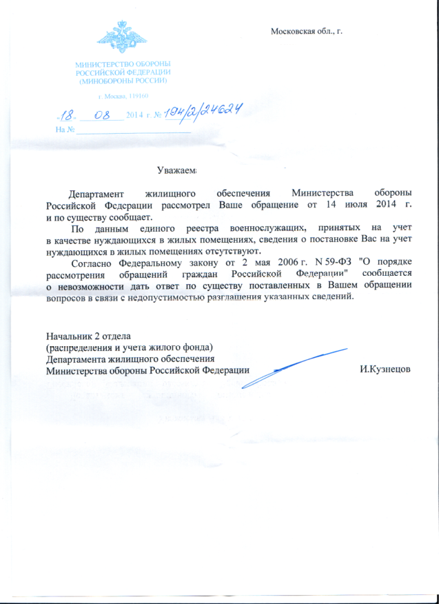 Дорогие друзья и сочувствующие, сегодня получил ответ из ДЖО МО РФ. Начальник 2-го отделения И. Кузнецов открыл мне дивный новый мир, в котором оказывается запрашиваемые мной сведения, государственная тайна! Такие чудеса права, вызывают у меня неподдельное удивление! Да вот текст запроса и ответ. Прошу если Вам нетрудно коллеги, прокомментировать. :D