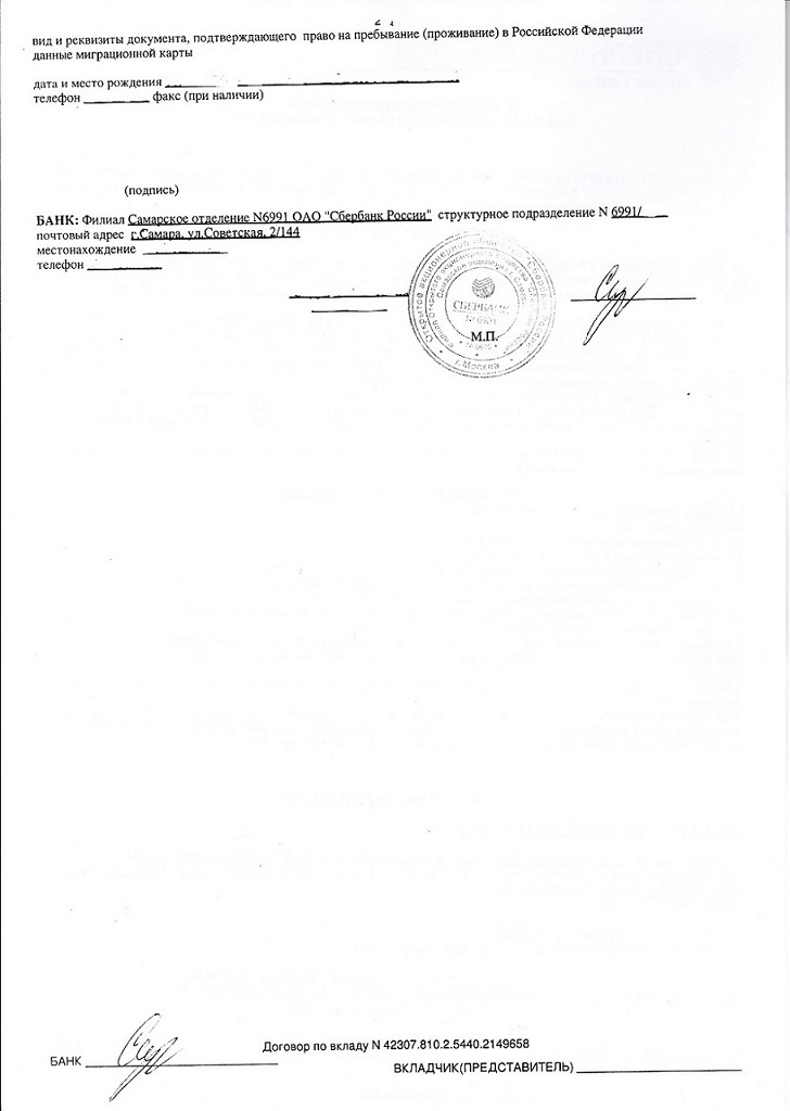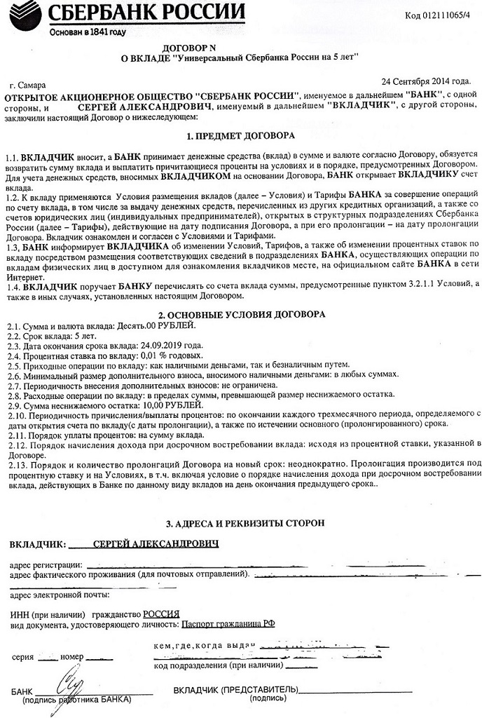 договор об открытии счёта в Сбербанке, который мне выдали