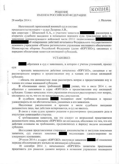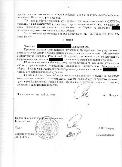 Выиграл суд. Отказ РУЖО в обеспечении моих жены и дочери ЖС считать незаконным. Теперь месяц ждать вступления решения в силу.