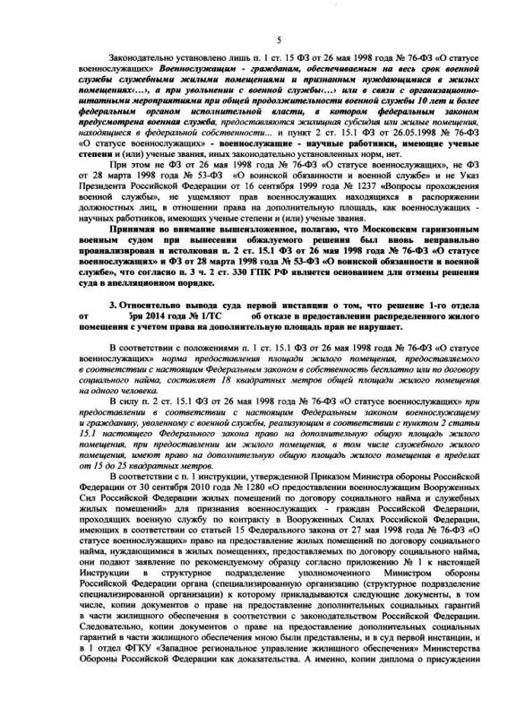 В дополнение есть смысл добавить аргумент о том, что в/сл не обеспечен жильём своевременно не по своей вине, по независящим от него обстоятельствам.