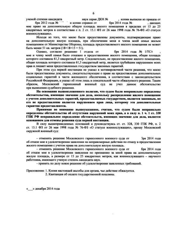#2684Почитайте вот здесь, может будет полезно: http://voensud.ru/go/?http://forum.ozpp ... p?t=142859- я постараюсь с Вашей общей помощьюОднако, для РУЖО эта бумажка никакой роли не играет, им необходимо решение суда.Мне бы еще опыта больше в этих всех судебных делах. Вот если апелляционная жалоба в окружном не в мою пользу, что дальше? Куда идти и с какой жалобой? с КАССАЦИОННой ЖАЛОБой и в В ВОЕННУЮ КОЛЕГИЮ ВЕРХОВНОГО суда?