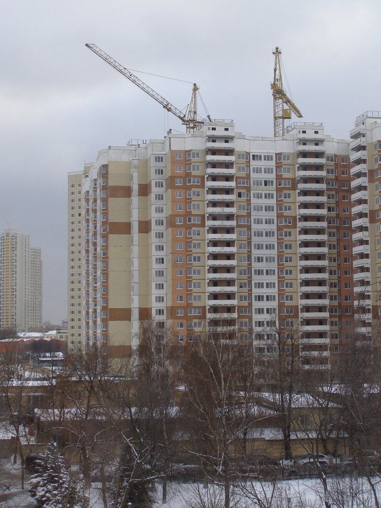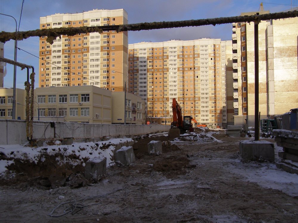 Стройка продолжается. Сегодня активно работали три башенных крана. Продолжают монтаж 7-го строительного корпуса: два подъезда уже вышли под крышу, остальные 9 - 10 этажей. Судя по всему информация о "замораживании" стройки и "передислокации" всех строительных сил на Лб не совсем верна. Стройку изначально вёл подрядчик СУ-155 - филиал СИ-17, сейчас его заменил другой подрядчик - ДСК-5. Появилась новая ключница - Наталья. Работает по раб. дням с 9 до 17, обеденный перерыв с 12 до 13, тел.: 916-824-23-49.