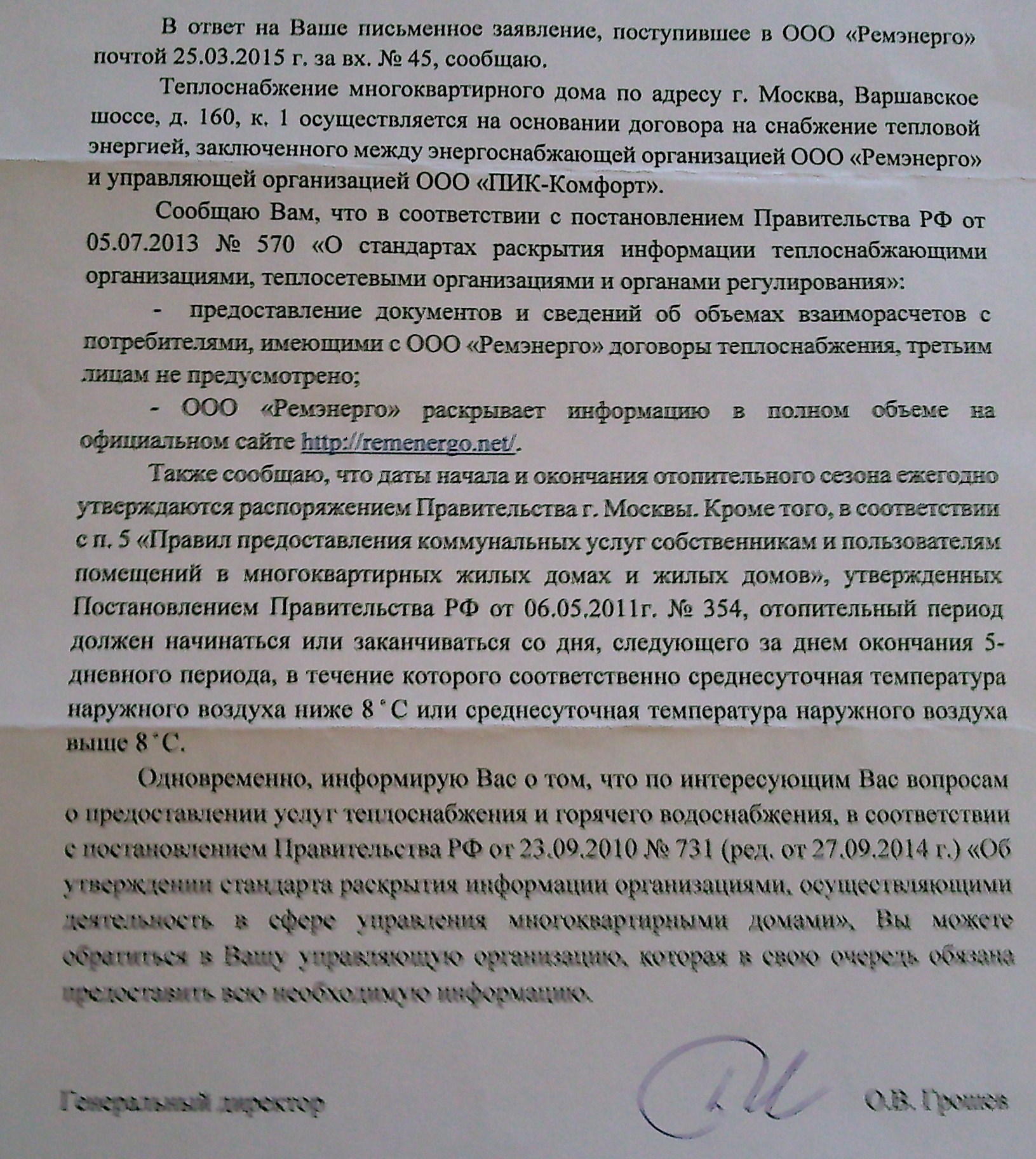 Ответ ООО "Ремэнерго"