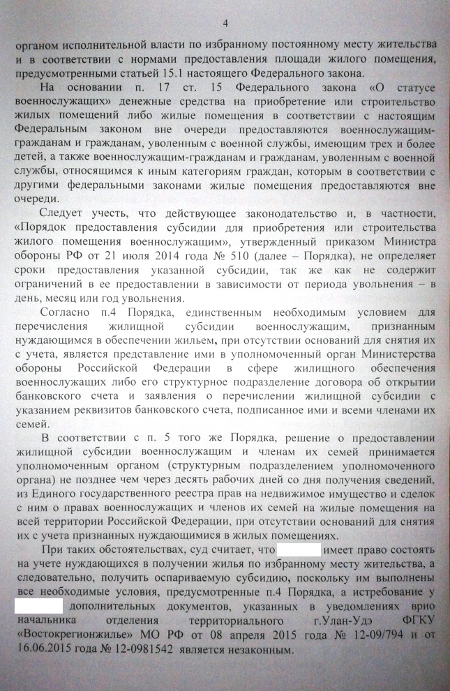 Когда этого негодяя четыре года не могли обеспечить, при наличии жилья в ИПМЖ с учетом, что в последний год у него было право внеочередности это было нормально.на стороне этого негодяя оказался закон