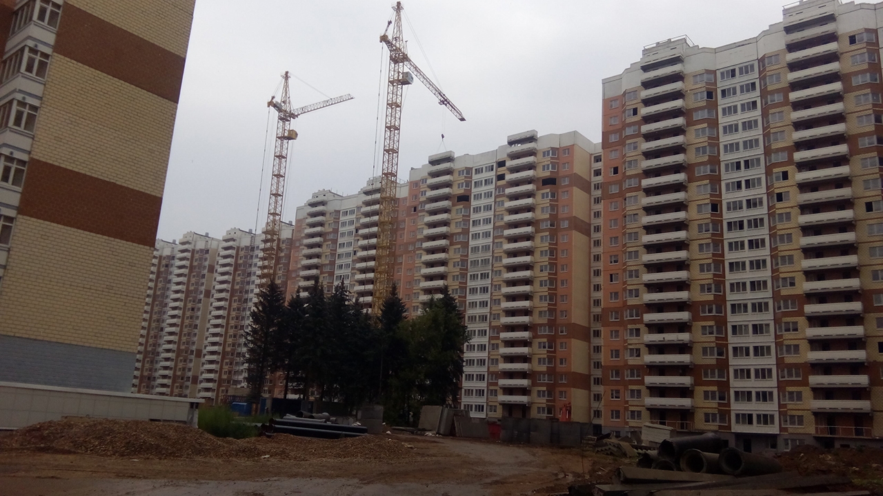 Корпуса средней степени готовности. Во всех этих корпусах начаты отделочные работы, но в данный момент рабочих нет. У 21-го корпуса не построен ИТП, но работы возобновлены.
