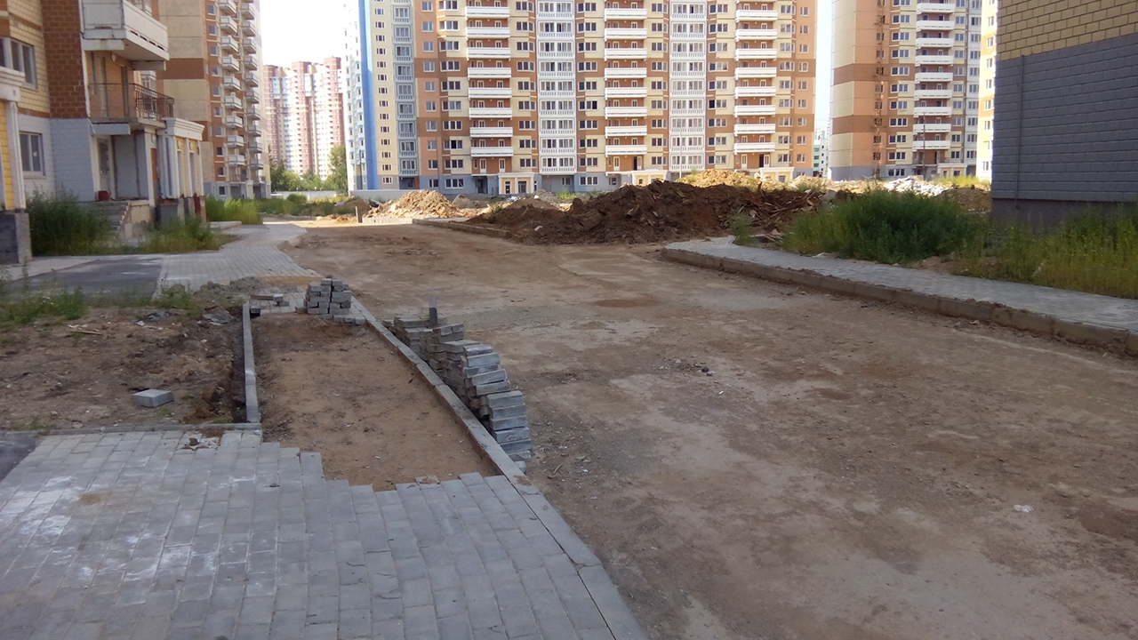 Ранее укладывали бордюрный камень и занимались вокруг 8-го корпуса. Были начаты такие же работы за 15-м корпусом. Сейчас все работы остановлены.