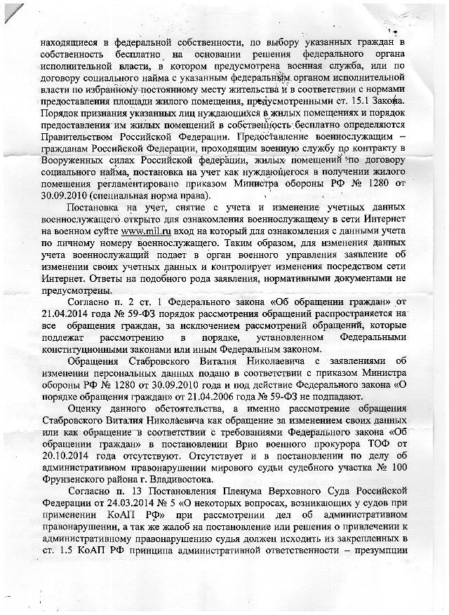 Мотивируют тем что нет: заявления от уполномоченного представителя ФГКУ «Специальное территориальное управление имущественных отношений» МО РФ на прекращение права оперативною управления в отношении данной квартиры...