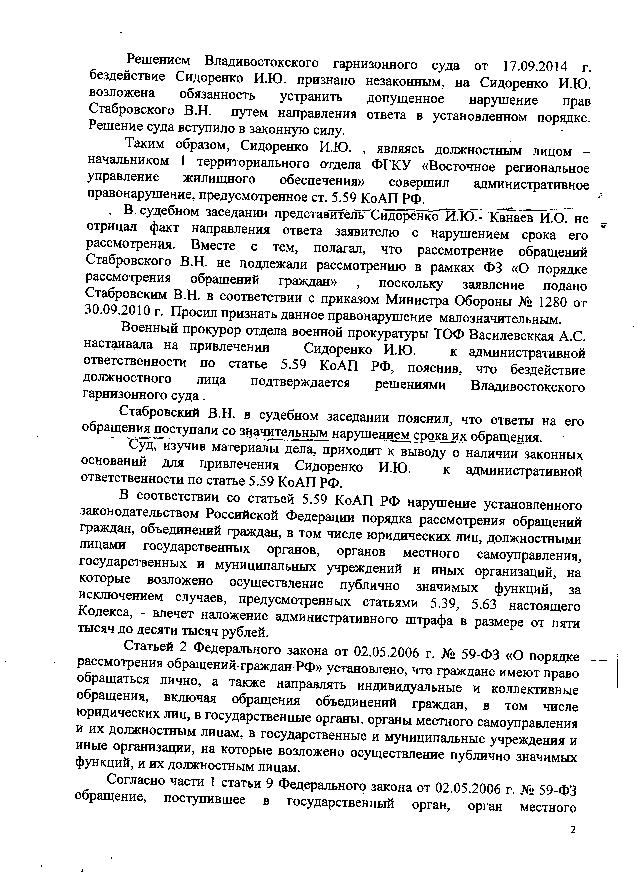 За несвоевременные ответы на заявления граждан Сидоренко Илье Юрьевичу на основании административного правонарушения, предусмотренного ст. 5.59 КоАП, присудили оплатить 10 тысяч рублей штрафа. Документ прилагаю.