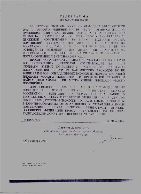 #9278Мне то понятно все, с точки зрения документов.... Главное что на новом месте нет ни единого здания для размещения подразделений, юридического адреса (как и почтового) присвоить не могут. В директиве на формирование не указан военный городок, а только населенный пункт в котором базироваться. Прописать личный состав при части невозможно. Вышестоящее командование боится доложить о том что инфраструктуры нет, и размещать часть негде, говорят можем в палатках вас разместить... Правда пока особо не гонят, ждут когда построят хоть что-нибудь. А личный состав снимая ж.п. по старому месту службы фактически лишен возможности получения компенсации за поднаем.