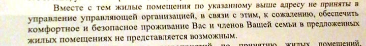 #19458Мы не просили о заселении или регистрации по месту жительства, а только о выдаче решения о передаче распределёной (не пред-) квартиры в собственность.