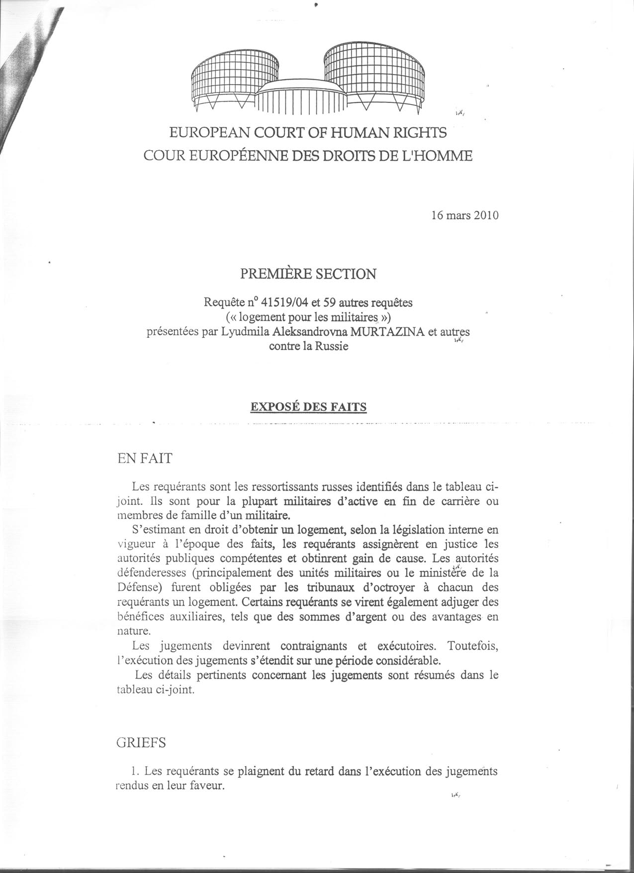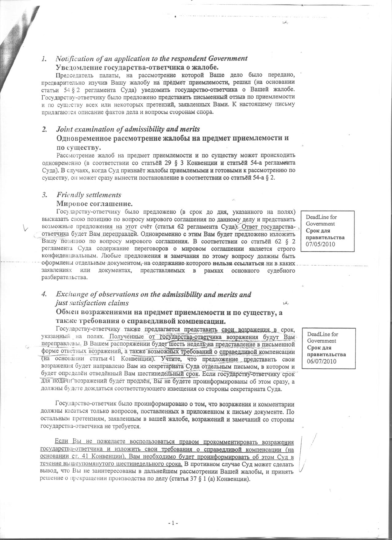 Если эта инфа из свободного доступа, то не вижу оснований её не выложить здесь в темеСтрасбург уведомил органы государственной власти по этим досье.