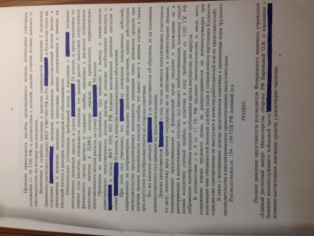 Решением Тамбовского районного суда Тамбовской области от 21 декабря 2015 года в удовлетворении исковых требований федеральному казённому учреждению "Единый расчётный центр Министерства обороны Российской Федерации" отказано.