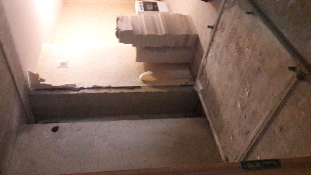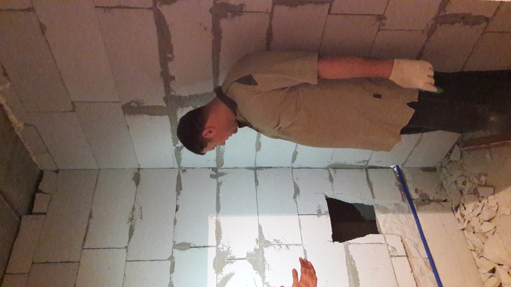 У нас санузел был изначально из пазогребня , построен меньшего размера, когда сломали-стало понятно, что был построен без единой привязки