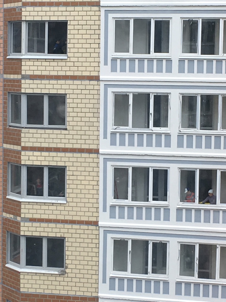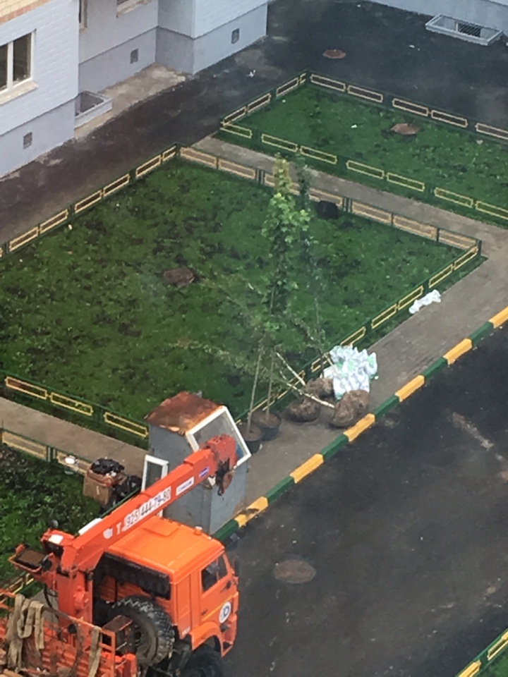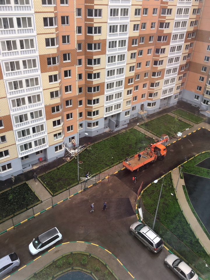 #39109В 1-4 подъездах 9 корпуса необычное оживление, моют окна,вывозят стройматериалы. Привезли деревья для озеленения.