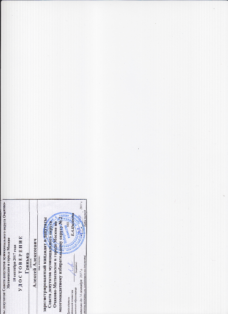 Я, Гринько Алексей Алексеевич, капитан 3 ранга запаса, выдвинул свою кандидатуру в депутаты района Очаково-Матвеевское г. Москвы.
