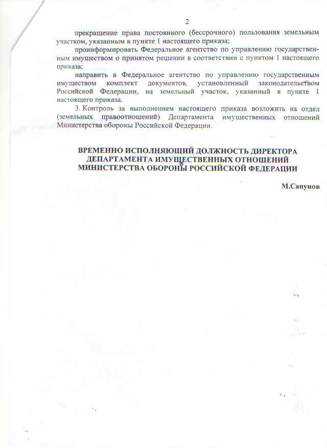 #123Они тут при чем? Не было их пока в списке кто против того чтобы собственники землю забрали!p/Victor, Минобороны уведомляет ФАУГИ о прекращении ведомственного интереса к конкретному госимуществу.QR_BBPOST Несмотря на наличие приказа Департамента имущественных отношений Минобороны отказываются выполнять приказ.