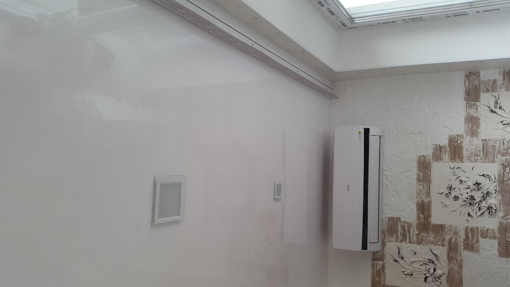 Закончили с натяжными потолками. В комнатах и коридоре ставил матовыеНиша под гардины