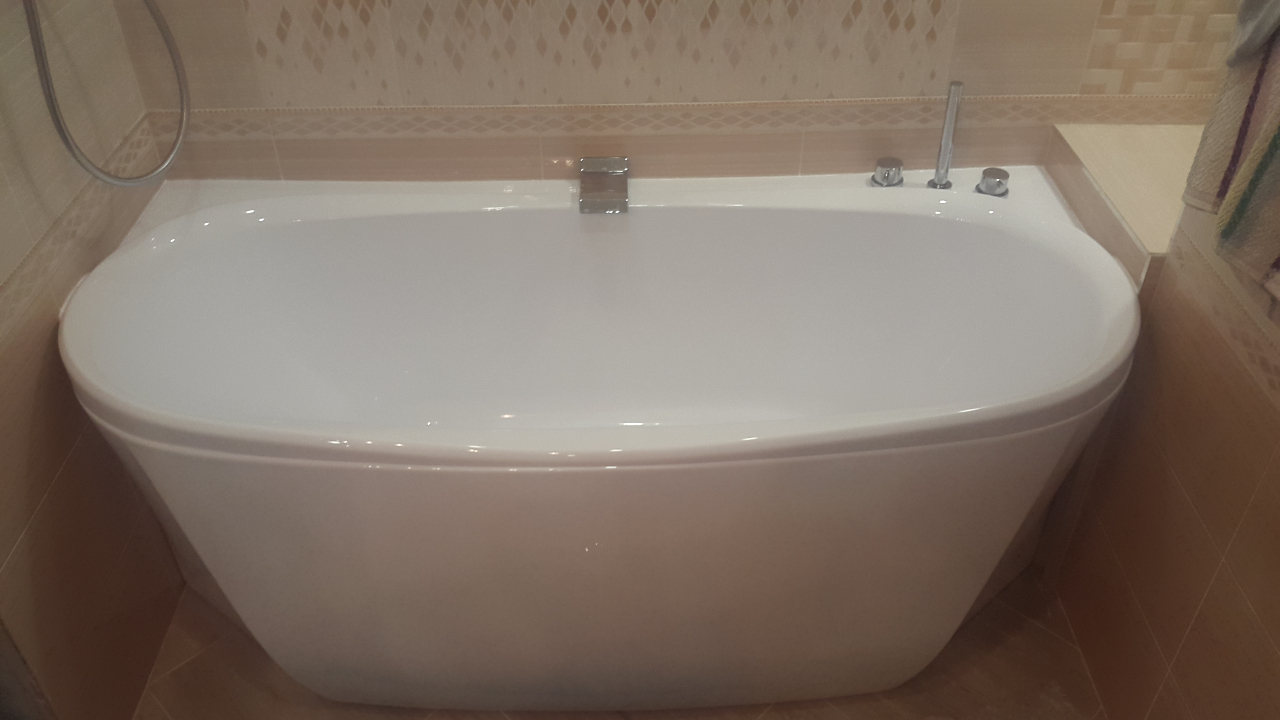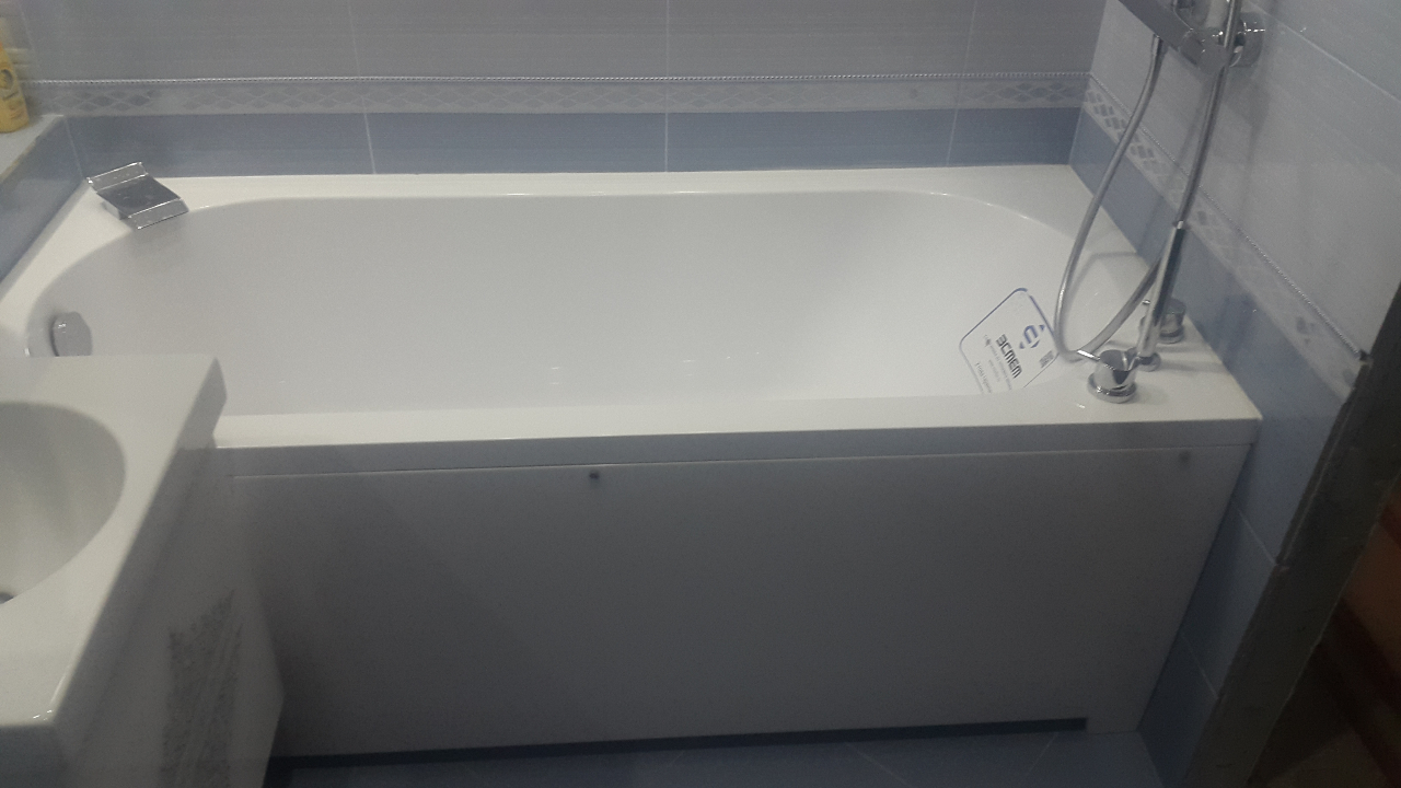 #582Ванны встали так. Немного не дотянули стены с учётом длины ванн (170). Пришлось городить огород с пристенками. Может кто-то учтёт у себя при работах. Места до инсталляции получилось достаточно. В нишах позже планирую стеклянные полки. Бойлер в ванной и проточник на кухне реально выручали в условиях отсутствия горячей воды.