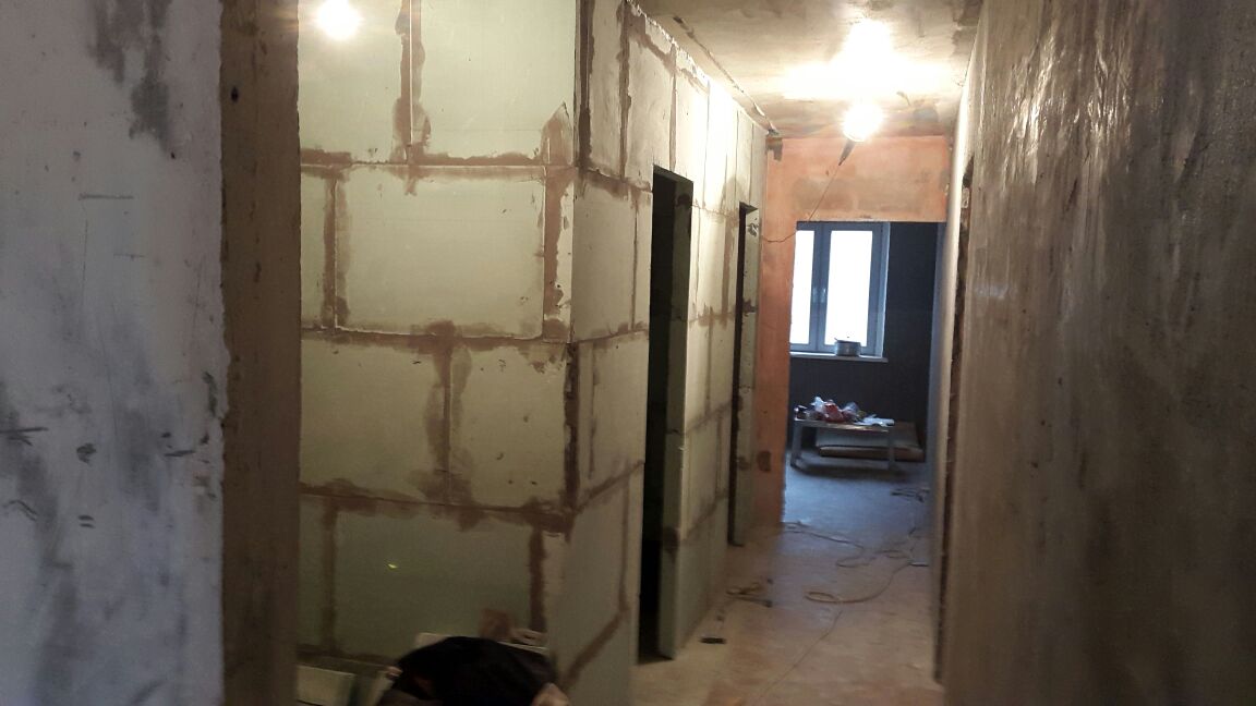 #703В трехкомнатная квартире 6 корпуса возведены стены в ванной и туалете. До пятницы доштукатуриваем стены. С понедельника выходит электрик