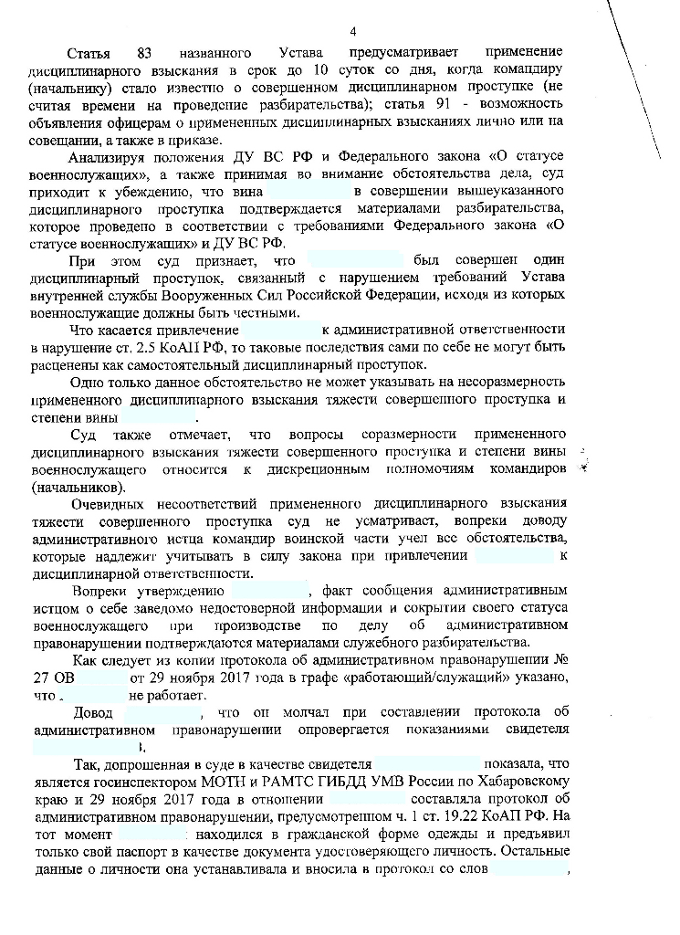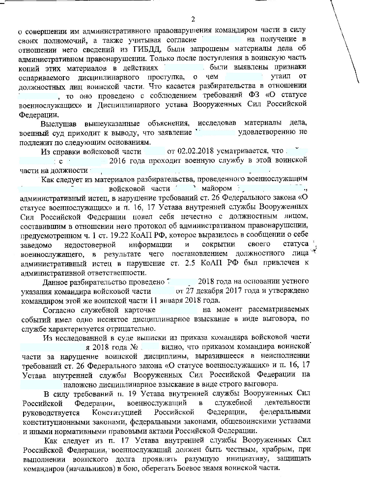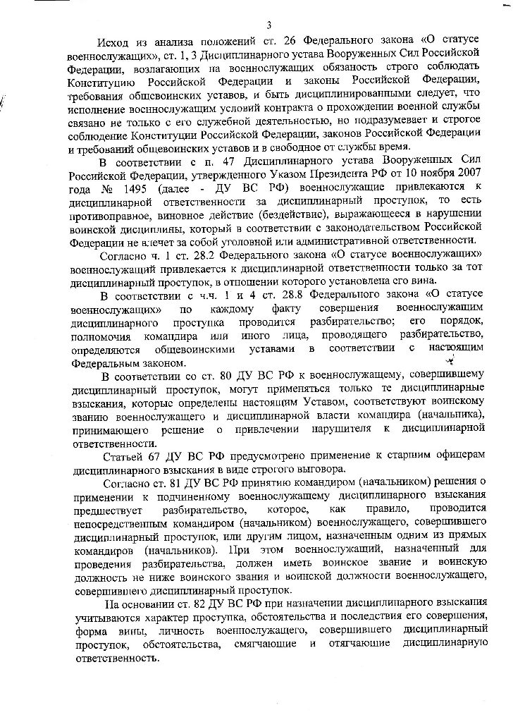 Таким образом, основанием применения к военнослужащему такого дисциплинарного взыскания, как досрочное увольнение с военной службы в связи с невыполнением условий контракта, может являться только дисциплинарный проступок (противоправное, виновное действие (бездействие), выражающееся в нарушении воинской дисциплины, которое в соответствии с законодательством Российской Федерации не влечет за собой уголовной или административной ответственности).
