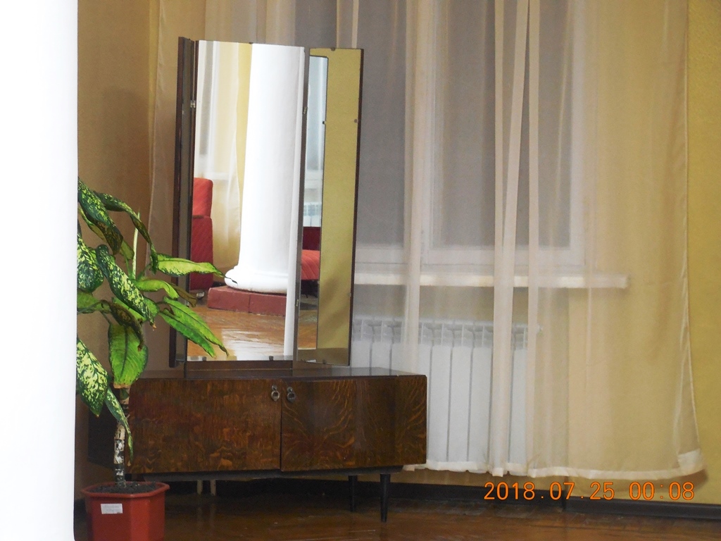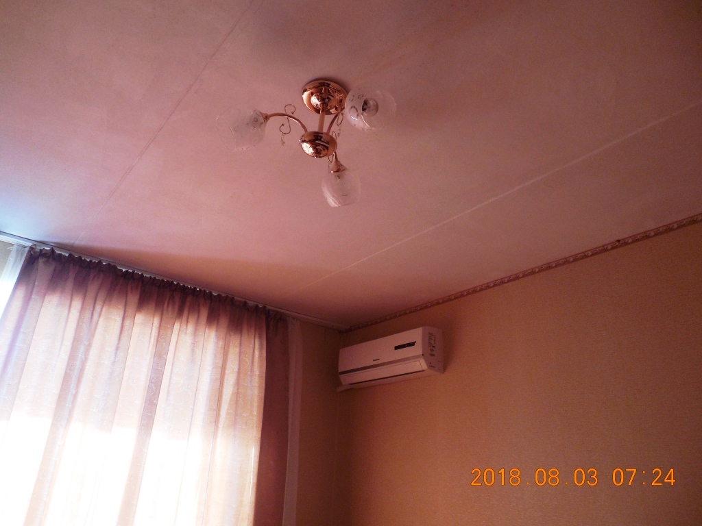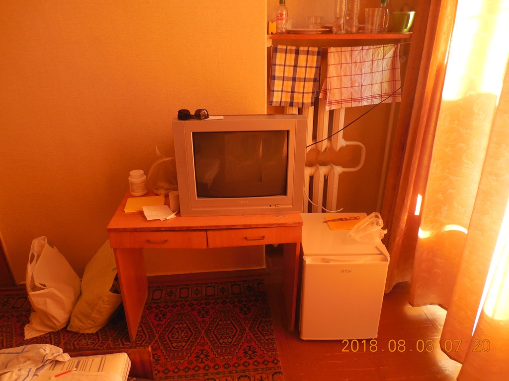 Две кровати 1,5 с пружинным матрасом старым, но поверх еще один матрас паролоновый новый в ткани (наволочке). Телевизор цветной, 21-23", правда старых годов выпуска, но экран почти плоский, с пультом ДУ (лентяйкой). Шкаф платяной 2 отсека, слева полки, справа перекладина и 6 вешалок-"плечиков" + 3 привезли свои, сверху открытые (без дверок) антресоли, на которых лежали два холлобайберовых одеяла. Холодильник высотой 0,5 м., новый, без морозилки, холодит плохо на самом максимальном делении регулятора холода, причем не отключается никогда, но работает тихо и спать не мешает. Оконно-дверной стеклопакет на лоджии из ПВХ с тройным остеклением, поэтому шум с моря и пляжная музыка до 2 часов утра практически неслышны при плотно закрытой двери.