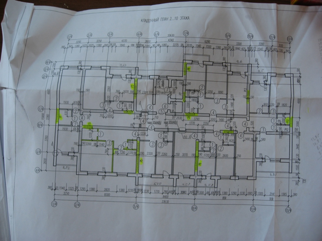 Сегодня заезжал по случаю на строительную площадку 2-го микрорайона ВОЛГАРЬ, выкладываю, что заснял: работы кипят полным ходом!!! Удалось сфоткать планировки. Не обессудьте, как мог... Метража на плане нет, но можно при желании посчитать. Жёлтым цветом отмечены вентиляционные шахты - для кухонь и санузлов. Внутри разводят электрику, на нижних этажах стеклят окна. Сразу огорчу ждущих однокомнатные (также, как и я) - их там нет. Все секции однотипные: на этаже две трёшки по торцам и одна слева внизу и две двушки друг напротив друга.