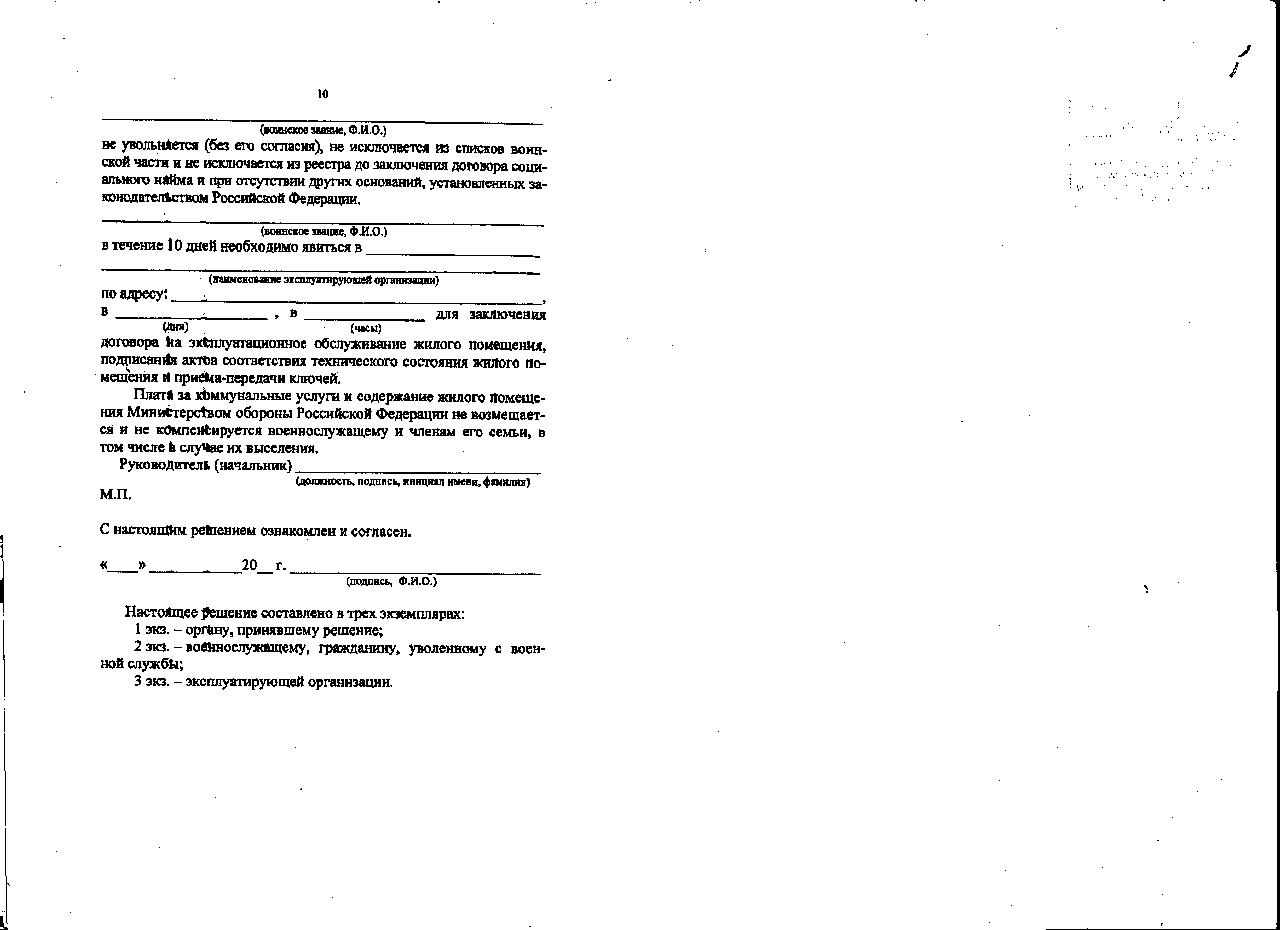 "О предоставлении военнослужащим Вооруженных Сил Российской Федерации жилых помещений по договору социального найма и служебных жилых помещений"