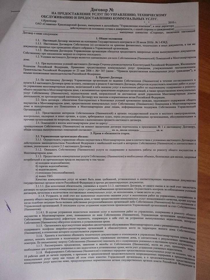 Я не знаю кто в Краснодарском филиале Славянки выдумал заключать договора найма. Это не законно.Что косается договора на техническое обслуживание и поставку коммунальных услуг, он какой-то сырой. Видно что фактически над ним никто толком не работал. Я думаю что он должен быть для нанимателей проживающих в служебном жилье трёхсторонний. И конечно же он должен быть заполнен. А для собственников договор прилагаю.