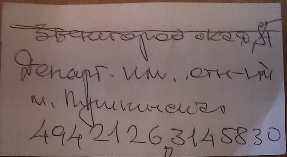 Выкладываю фото оригинала записки с адресом подразделения Департамента имущественных отношений МО РФ в Питере и их телефоны, полученный на встрече с представителями ЗРУЖО в Североморске 07.05.2011 года.