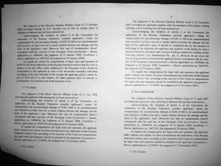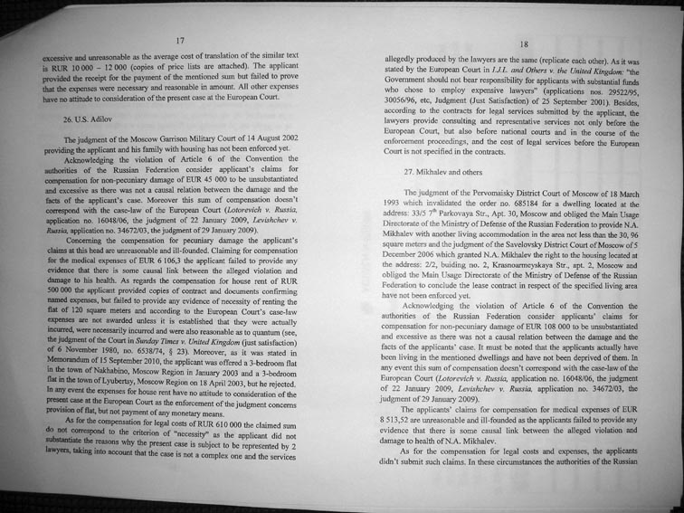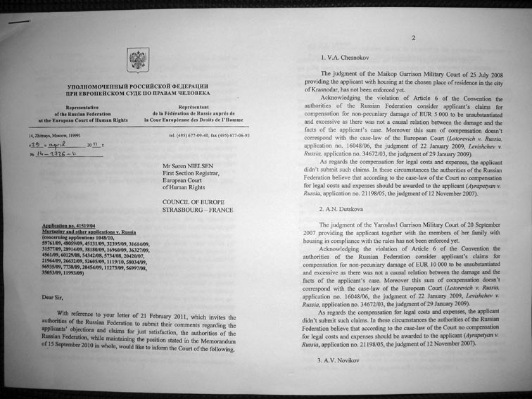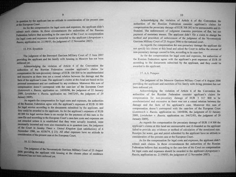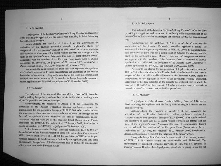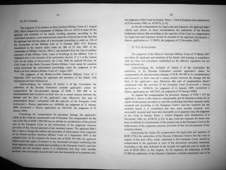 Re: ЕСПЧ о жилищно-военных вопросах