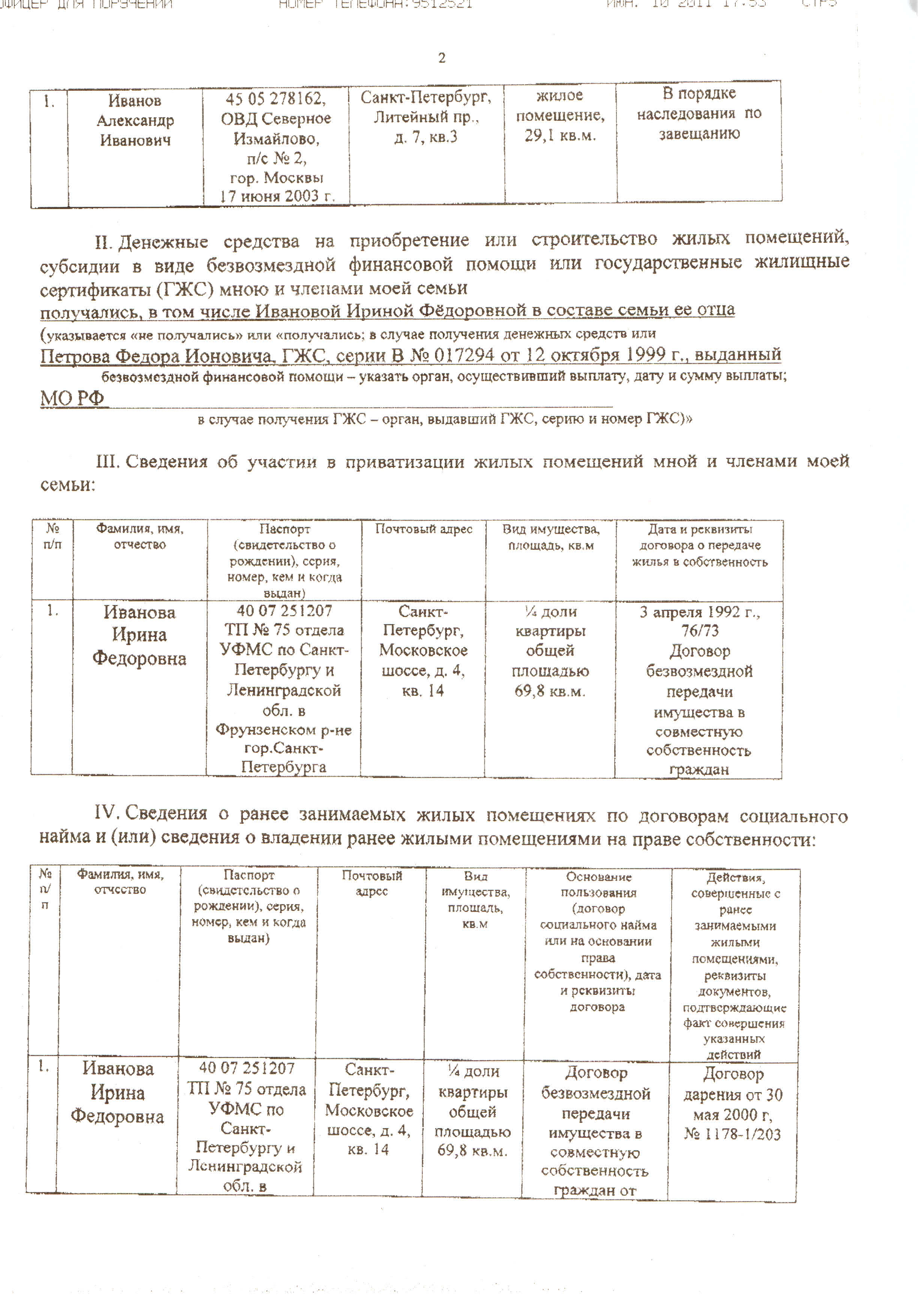 #298Кто подскажет. В Сведениях о наличии (отсутствии) жилых помещений, занимаемых по договорам социального найма и (или) принадлежащих на праве собственности военнослужащему и членам его семьи., в IV пункте сведения о ранее занимаемых ЖП по договорам соц найма ,что мне правильно записать? Я жил у родителей до 2007 г в социальной квартире.Значит занимал писать? Как трактовать этот пункт?