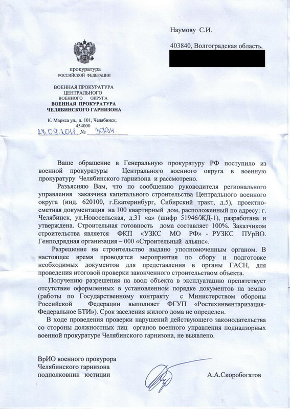 Теплый Стан 1 отдел ФГУ ЗРУ ЖО МО РФ Нет, именно заявление с просьбой в просительной части о заключении с нами ДСН, поскольку дом в ОУ принят был еще в 2010 году, распределение получили по приказу № 80, в жилом помещении уже почти год проживаем, по акту приема-передачи, заключенному еще с КЭЧ. Подордерные дела по 65 квартирам нашего дома в ЗРУЖО с июня месяца. И никто их даже не проверил и в ДЖО сведения о том, что дом давно распределен естественно не передал. Написание данного заявления вынужденная мера. Квартиру повторно распределили по приказу 1280 другому военнослужащему. Его естественно попросили написать отказ. Но мало ли что. В нашем государстве ничто лишним не бывает. В прокуратуру то сразу обращаться не хочется, а так хоть на руках будут документы, подтверждающие, что обращались. А то, скажут потом, что сами сидели, ничего не делали.