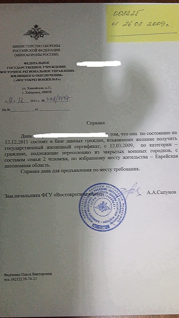 В декабре прошлого года ездили в ВРУЖО,где нам сказали,что мы стоим на учете,но это ничего не значит,деньги на эту программу не выделялись с 2008года.Мы попросили вот такую бумагу.