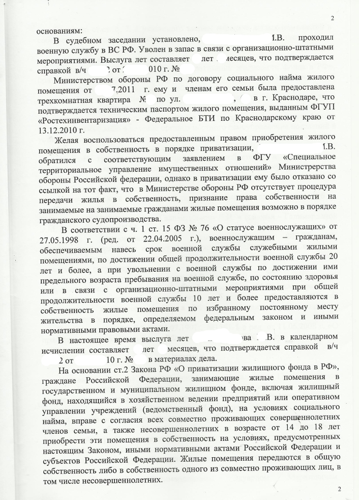 Договор социального найма с Вами заключен? Тогда хоть и отказываетесь от участия в приватизации, а в суд подавать Вам.подскажите.ХОЧУ приватизировать квартиру полученную по дсн, состав семьи: я,супруга,сын-1,5года.Но хотим приватизировать на жену и сына,т.к я участвовал в приватизации.справки и ответы из СТУДИО и РУЖО собрали, тех. и кадастровый паспорт заказали. Не могу понять кто должен подавать в суд, я- но я отказываюсь от приватизации ? и какая особенность в заявлении в суд, как правильно написать ? Заранее спасибо за помощь !!!