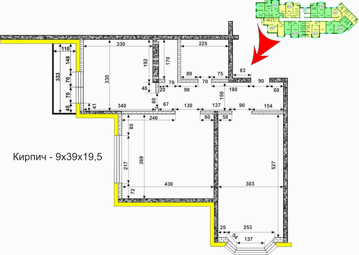 По крайней мере видно где кирпич, а где бетон (Снаружи кирпич толще). За точность не отвечаем - погрешности рулетки и отделки. Всех С РОЖДЕСТВОМ ХРИСТОВЫМ!!!