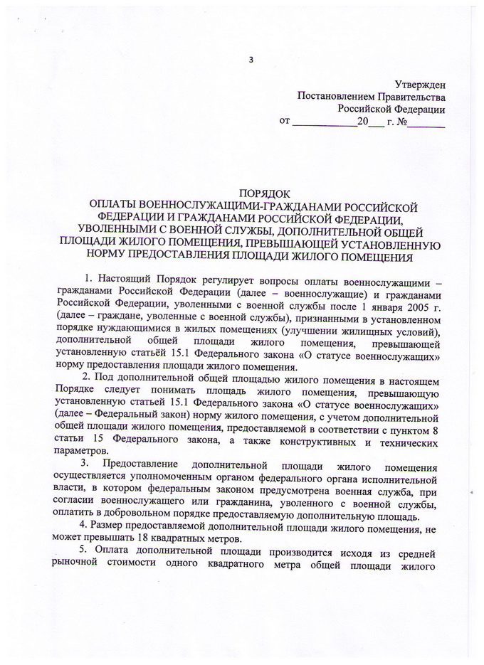 Идиоты. Самое ценное, что они впихнули в этот документ, то, что оплата дополнительной площади и единовременная денежная выплата осуществляются по решению и в порядке, которые придумает сам себе орган исполнительной власти, т.е. МО РФ. Остальное - вода ни о чем.