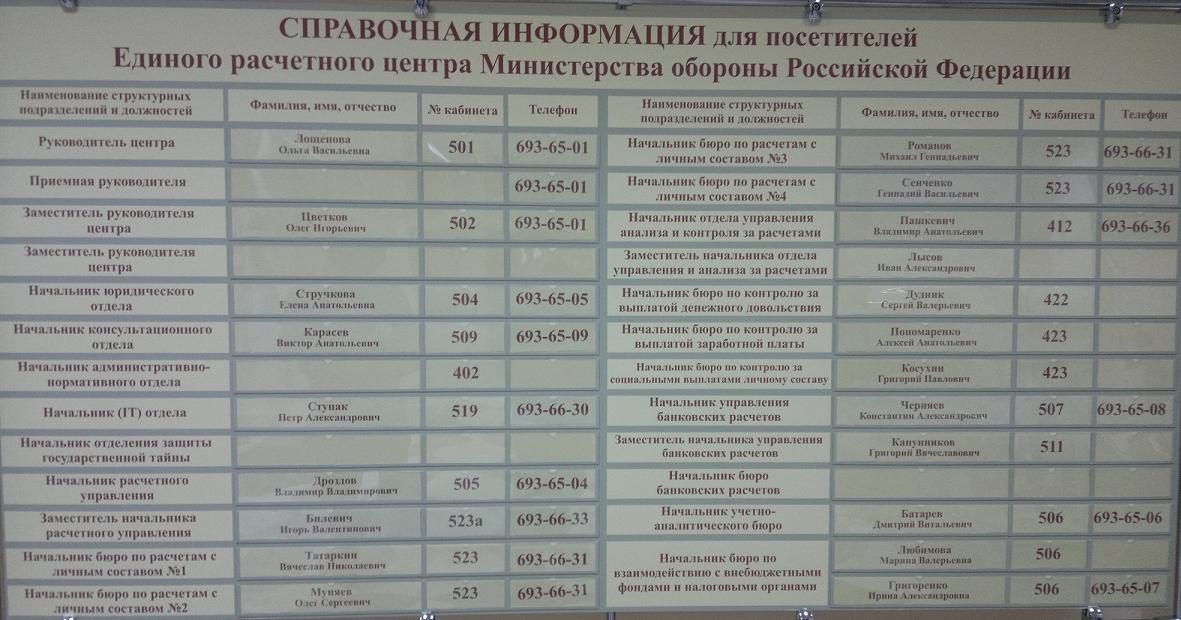 #1286Вопрос встречается с завидным постоянством.подскажите пожалуйста,кто знает,ФИО начальника ФКУ ЕРЦ МО РФ и его рабочие телефон,а так же ФИО и раб.тел. начальника отдела расчёта ДД.