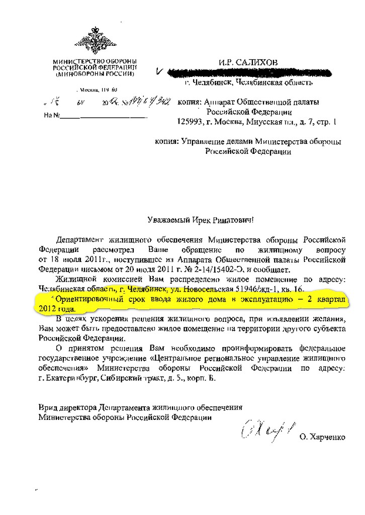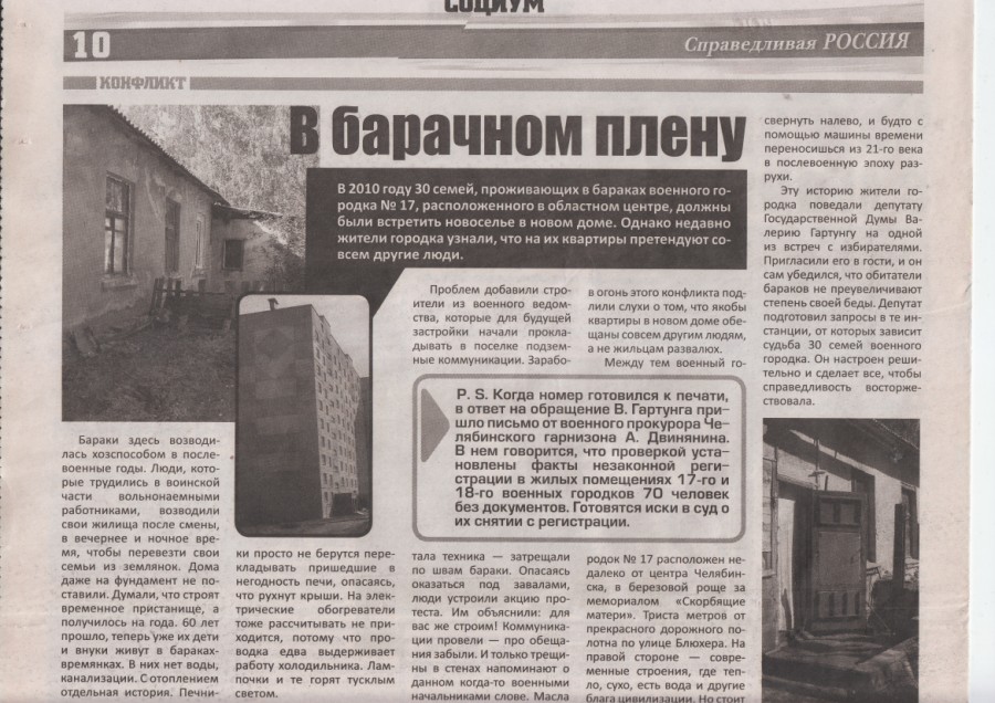 Напомним, возведение многоэтажки для ста семей по улице Новосельской, 31-а, заказчиком которого выступила воинская часть, началось еще в 2008 году. Через год часть была расформирована, и возведением жилого дома занялось региональное управление заказчика капстроительства ПУрВО. Однако позже выяснилось, что военные своевременно не подготовили необходимые для государственной регистрации документы, и им было отказано в получении «зеленок». Несколько военнослужащих, устав скитаться по съемным квартирам, въехали в новостройку, но живут без элементарных удобств: дом не подключен к сетям из-за того, что его не принимает комиссия министерства, хотя вся инфраструктура подготовлена.