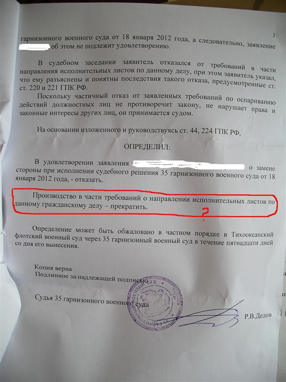 Попытался вчера заменить ответчика по вступившему в силу решения суда о восстановлении в списках части с команандира на министра и ЕРЦ. Отказ. Теперь вот