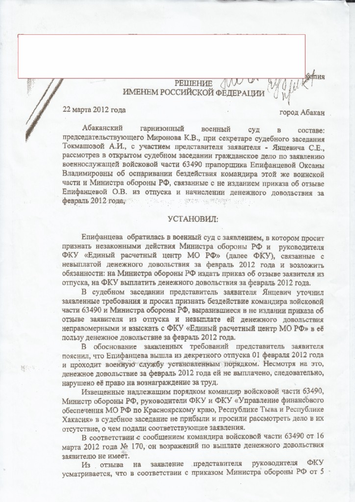 Свершилось выкладываю ссылку на решение по невыплате января и куцого февраля действующему офицеру, не заштатнику http://murmgvs.mrm.sudrf.ru/modules.php ... 1000059741