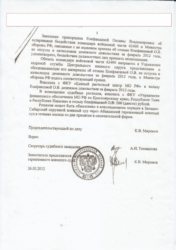 Решение может быть обжаловано в апелляционном порядке в Московский окружной военный суд через Московский гарнизонный военный суд в течение месяца со дня принятия решения судом в окончательной форме.