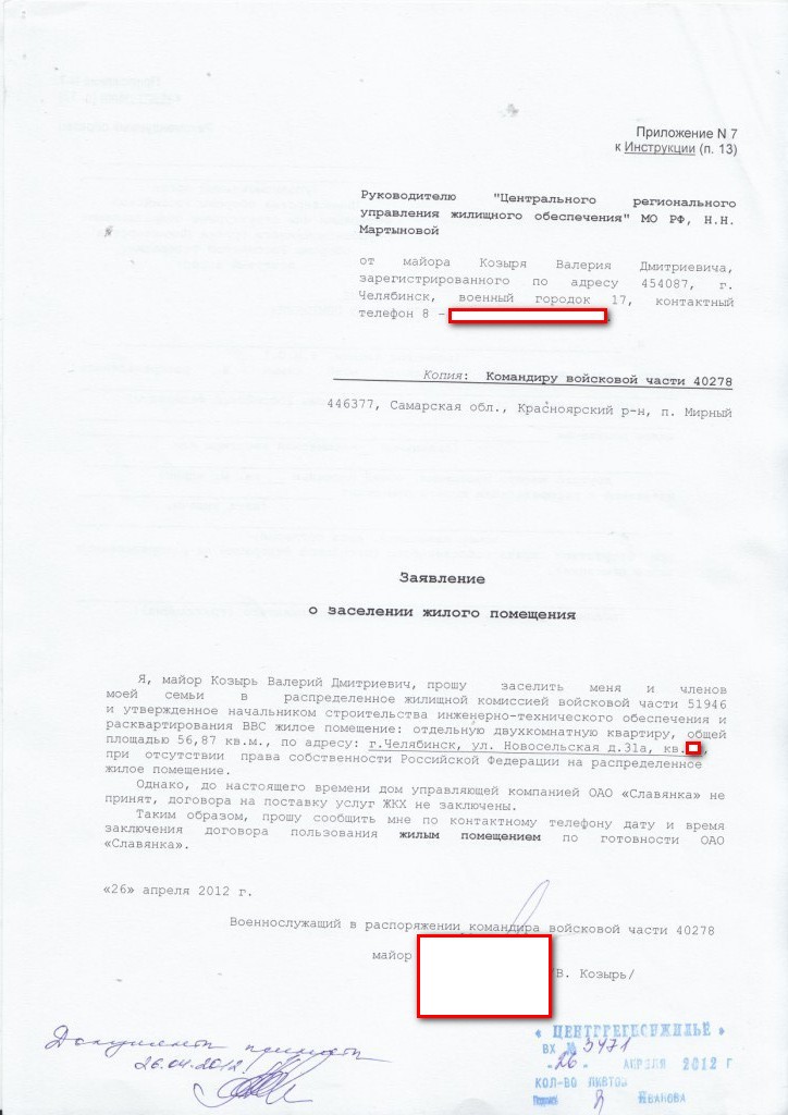 Когда крайний раз предоставлял документы в ЦРУЖО пытался "просунуть" заявление на тему: Но как мне пояснили, что "У Вас дом не сдан и порядок у них не определен", я так думаю необходимо по данному вопросу дожимать!!!
