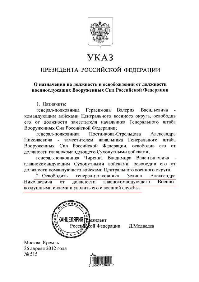 Новость ГК ВВС т.Зелина уволили: Источник: http://pravo.gov.ru:8080/page.aspx?13209