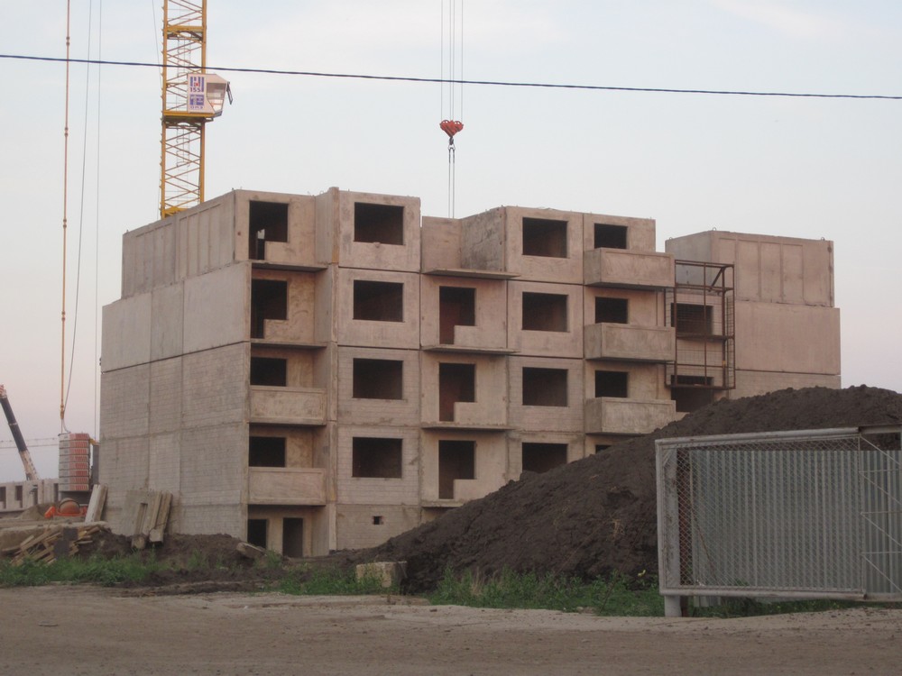 Гулькевичи выполняют свою часть договора: приступили к разводке коммуникаций по городку, начались работы по строительству котельной. Пробурили скважину для воды. Сказали техническая. Стройка в поле, вода необходима. Работы ведутся круглосуточно. В среднем: неделя уходит на возведение этажа в блочном доме. В первом литере стоит три этажа.