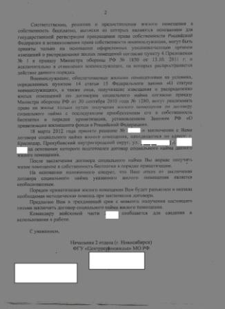 Затем обращаетесь в суды: 1. в гарнизонный по месту службы - с заявлением на обжалование неправомерных действий должностных лиц и требованием в обязать передать ж.п. в собственность бесплатно; 2. в районный суд по месту нахождения недвижимого имущества с заявлением о признании права собственности на данное ж.п. за членами вашей семьи в порядке статьи 15 ФЗ "О статусе военнослужащих".