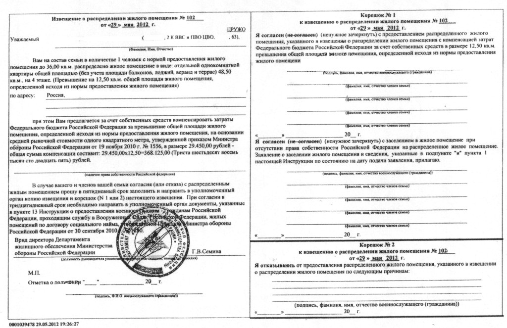 Извещение выписано от 29 мая 2012го, а 1450дсп Табуреткин прикрыл 28 апреля 2012го.VOENMOR TOF писал,