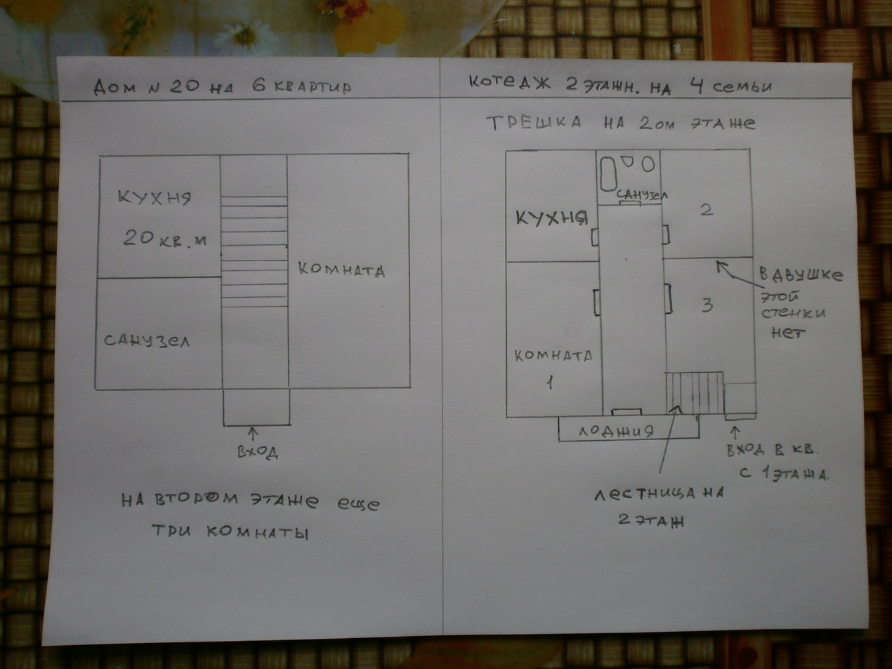 Вот схемка квартир котеджей по 60м.кв на 4 семьи и дома на 6 квартир по 100 м.кв.